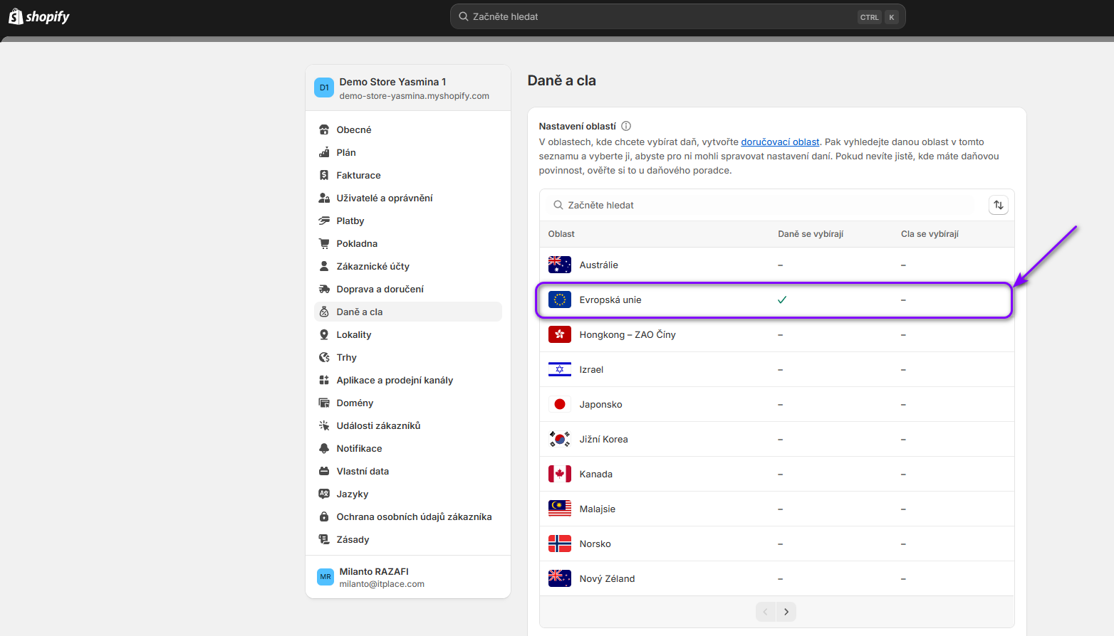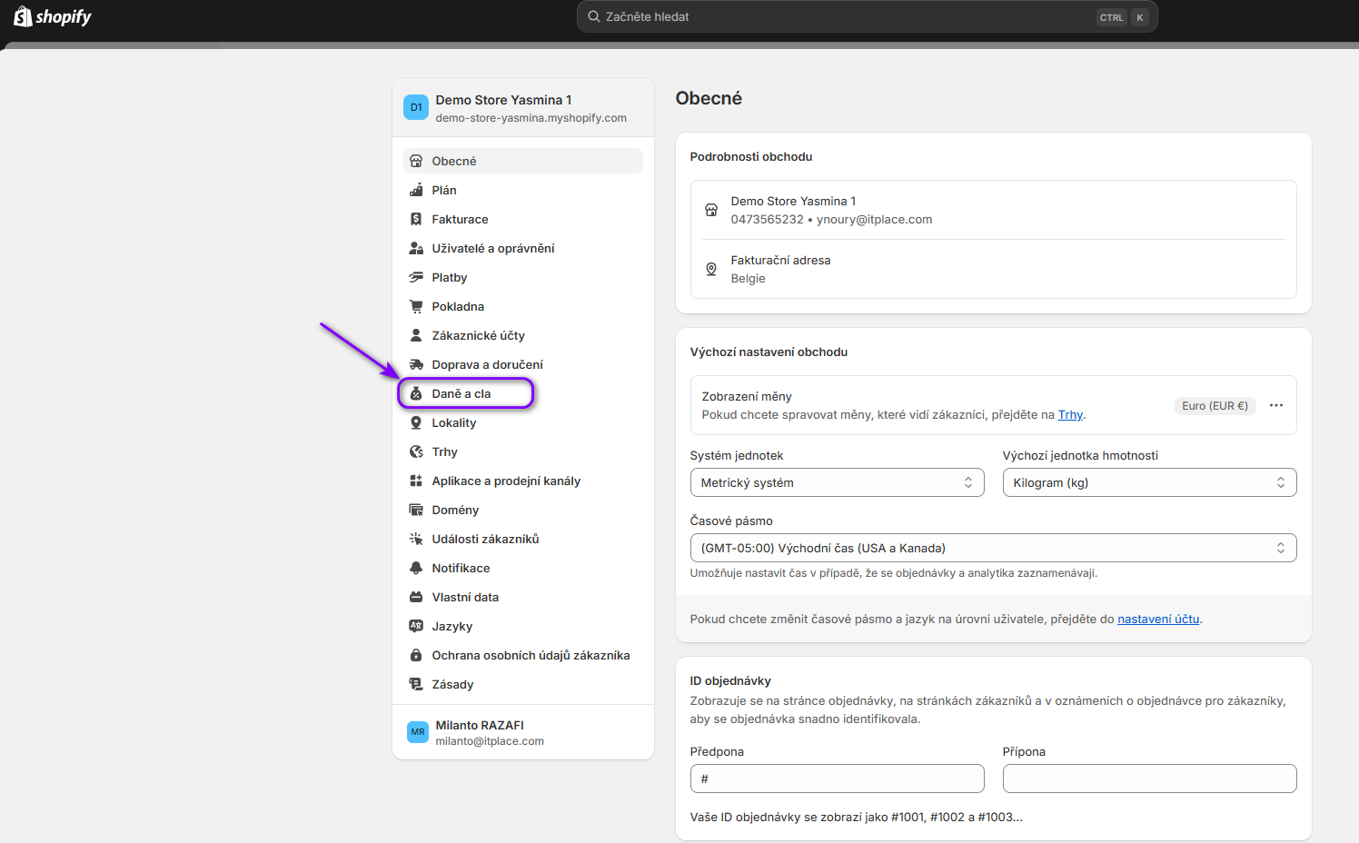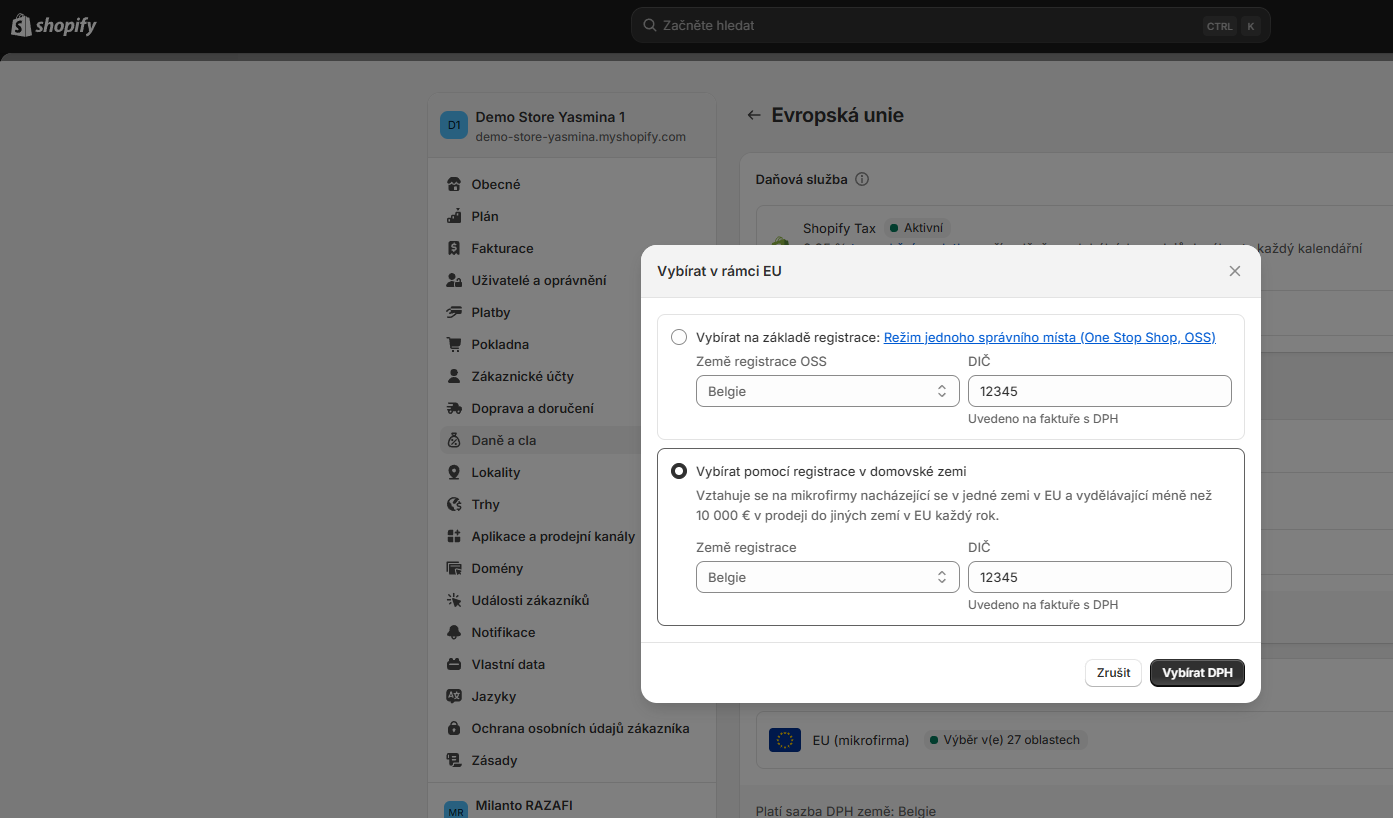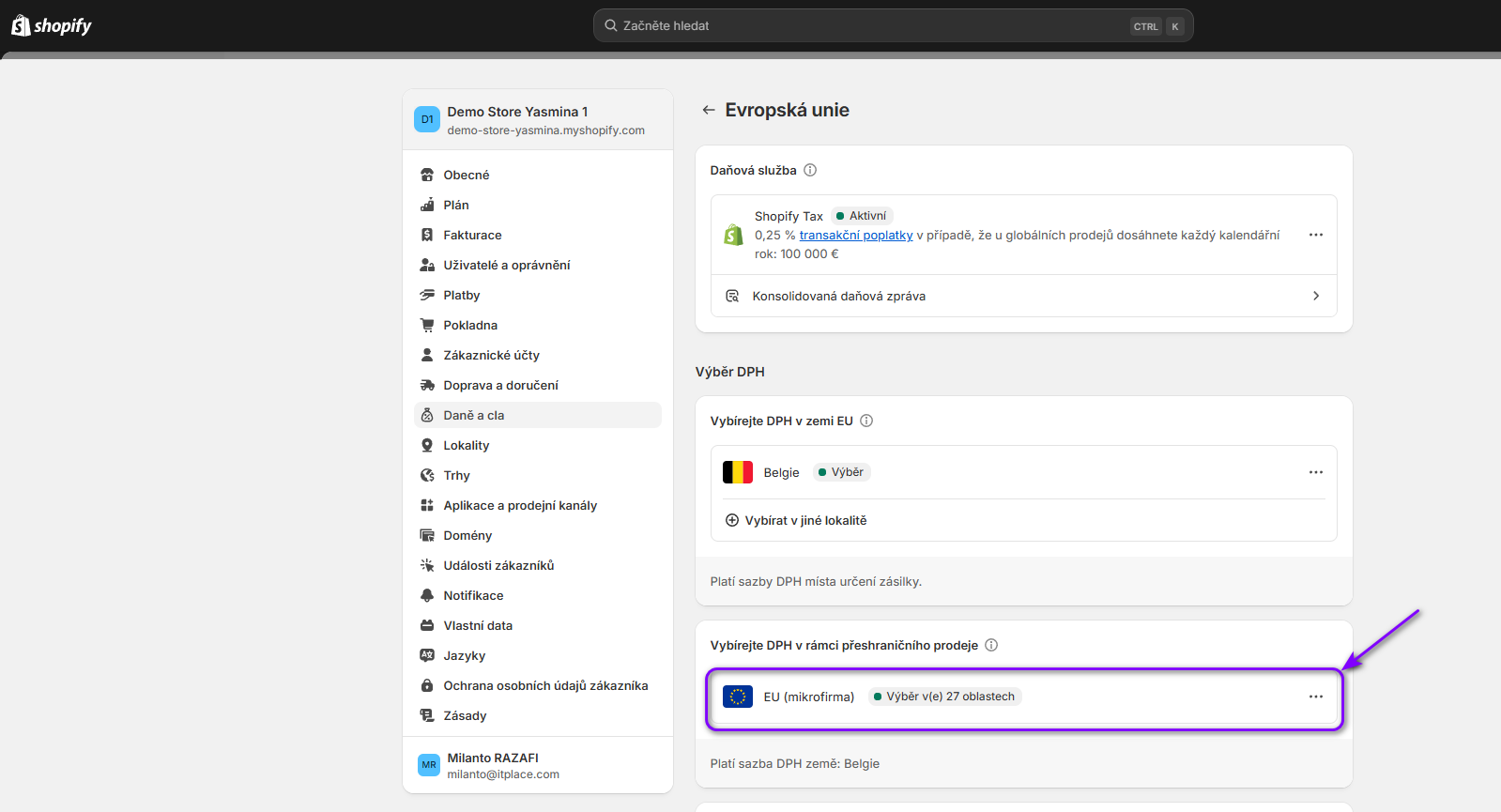 Kontrolní seznam před použitím CommBilling: Nastavení DPH v EU v Shopify