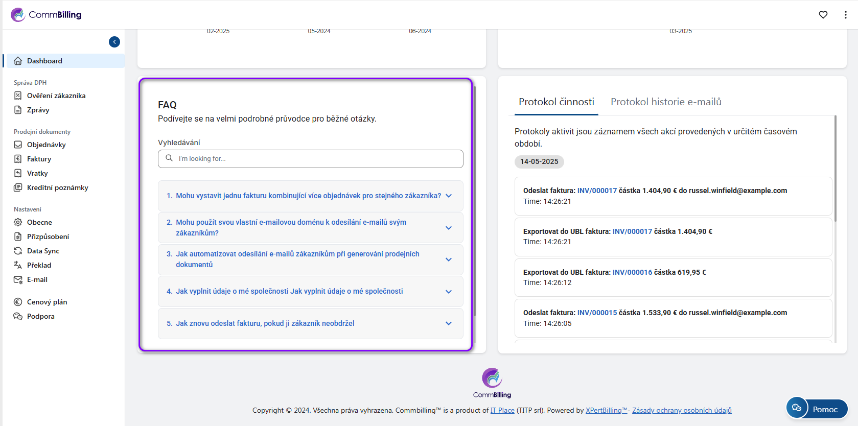 Sekce FAQ odpovídá na běžné otázky o CommBilling obecně.