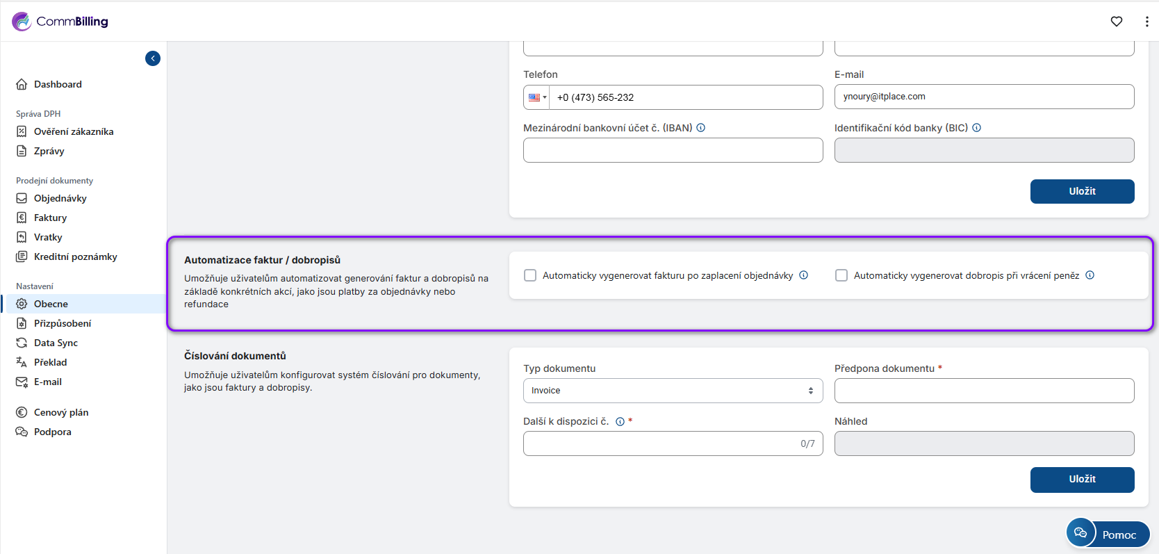 - Krok 3: Přejděte dolů do sekce Automatizace faktur a dobropisů.