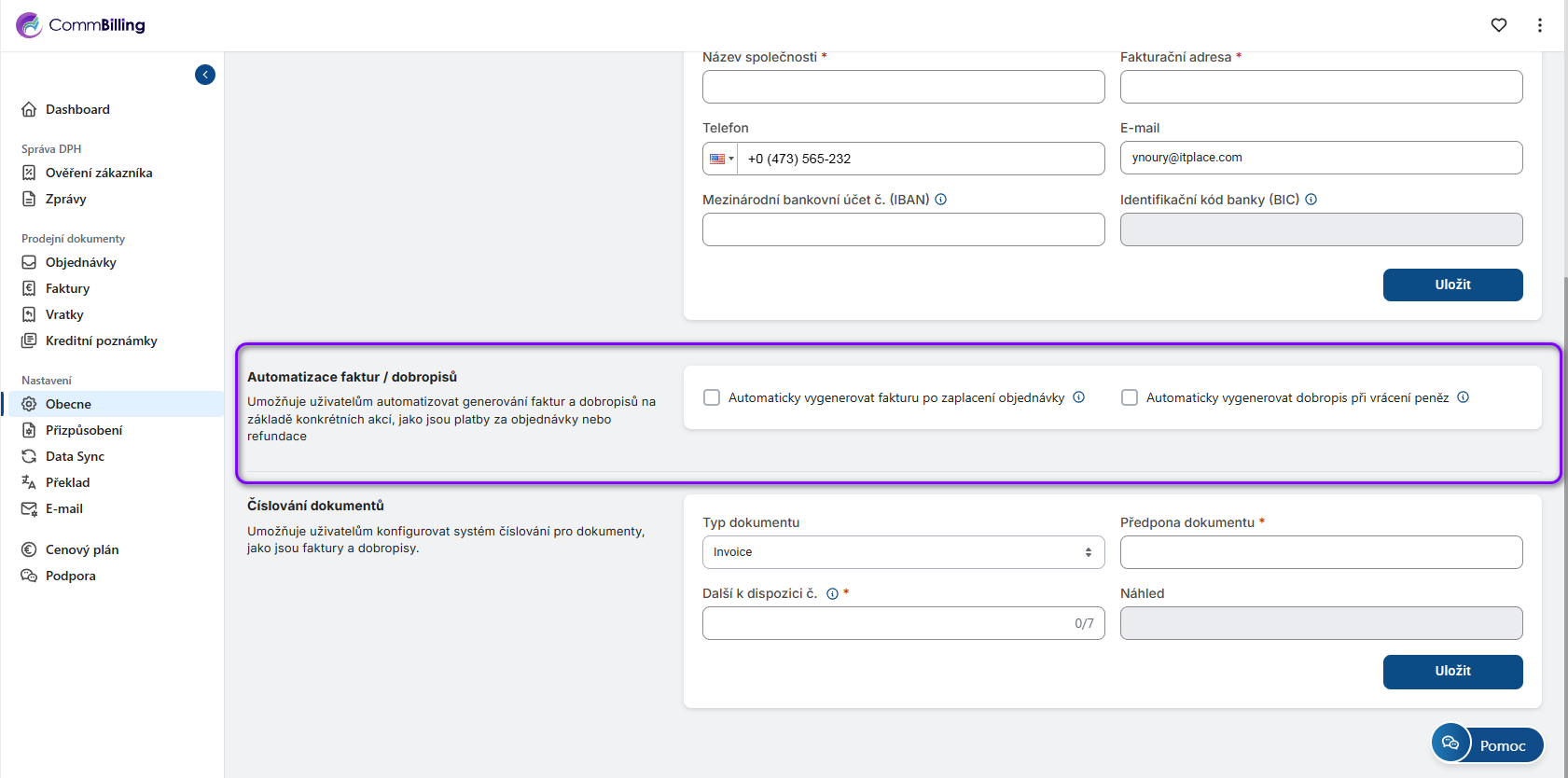 • Krok 3: Přejděte dolů do sekce Automatizace faktur a dobropisů.