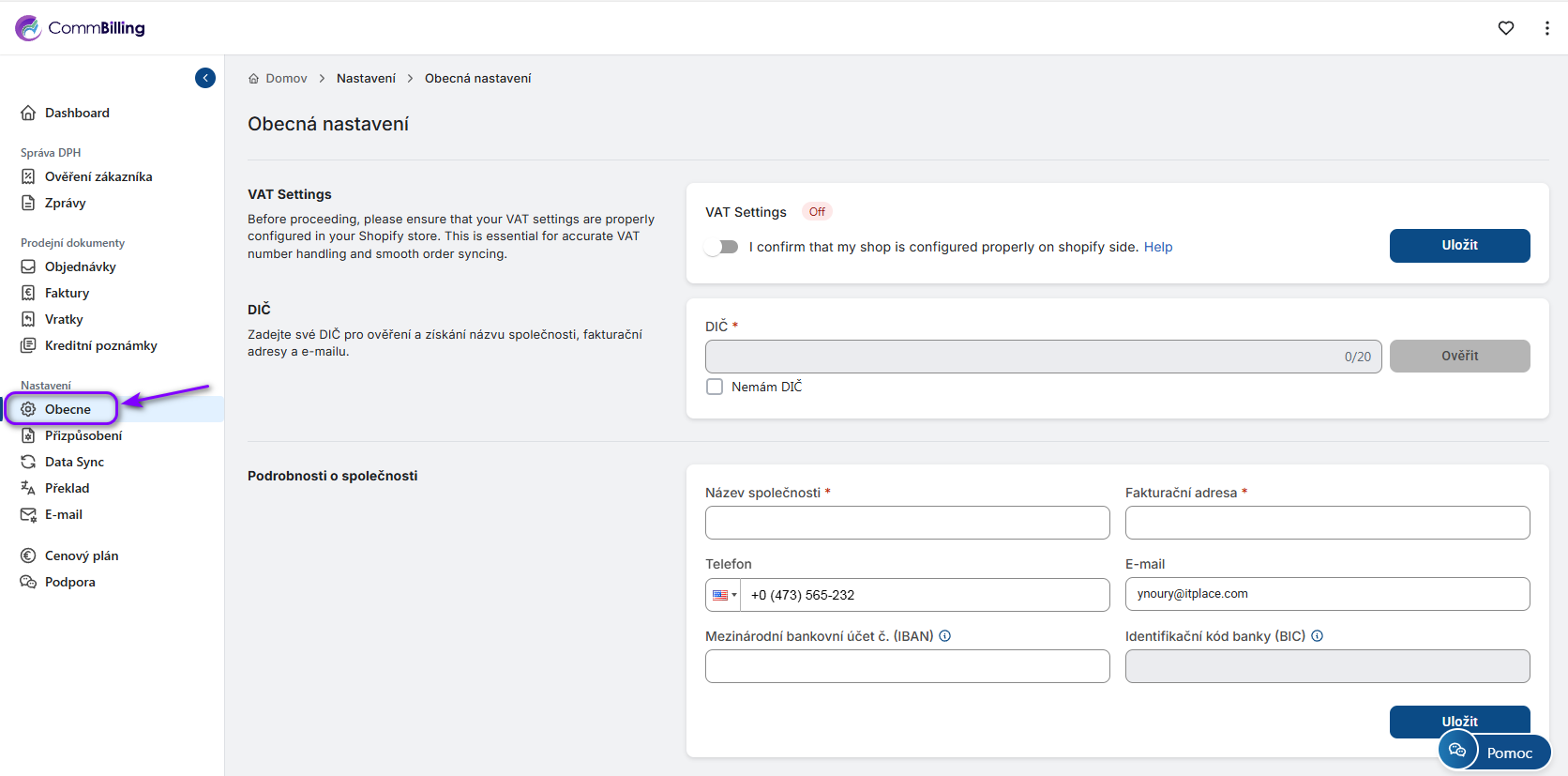 • Krok 1: Přejděte na záložku Nastavení v CommBilling.
