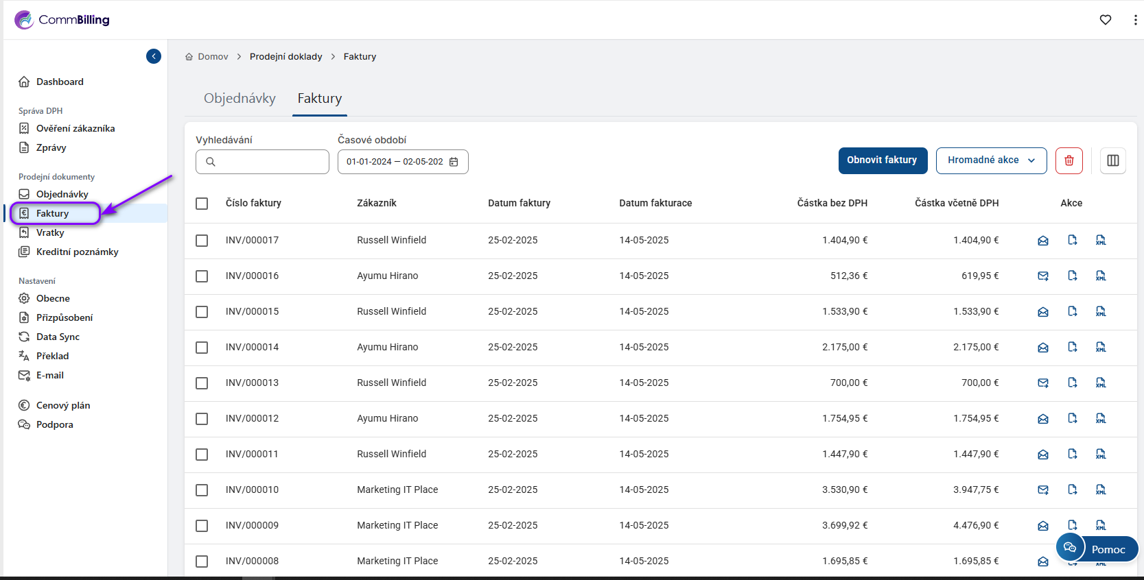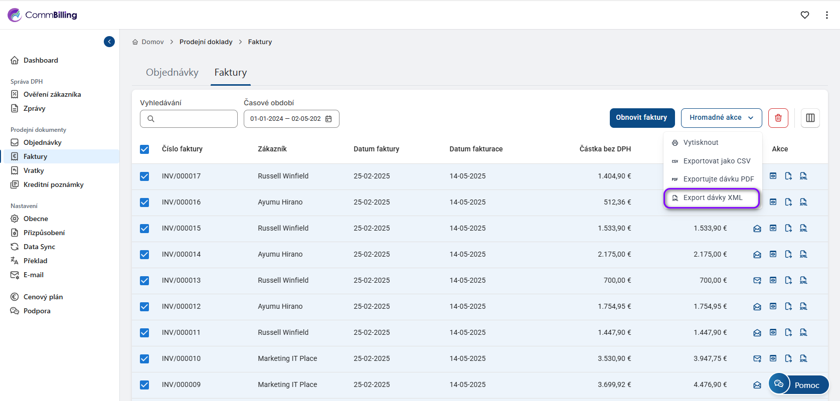 Jak exportovat faktury jako XML hromadně (plán C-Business)