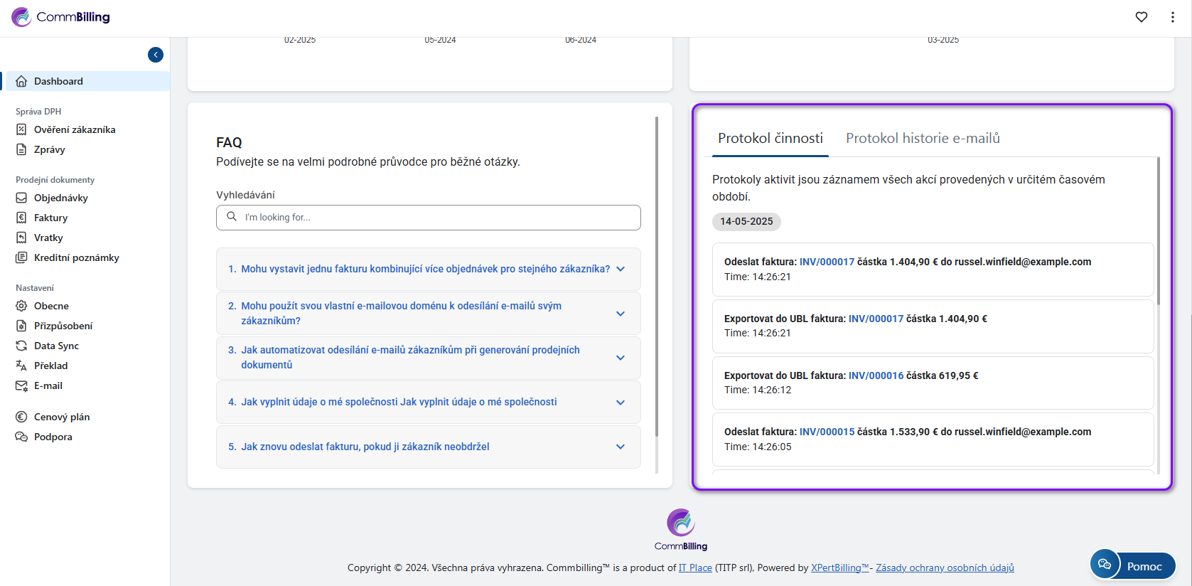Jak sledovat protokol aktivit v CommBillingu