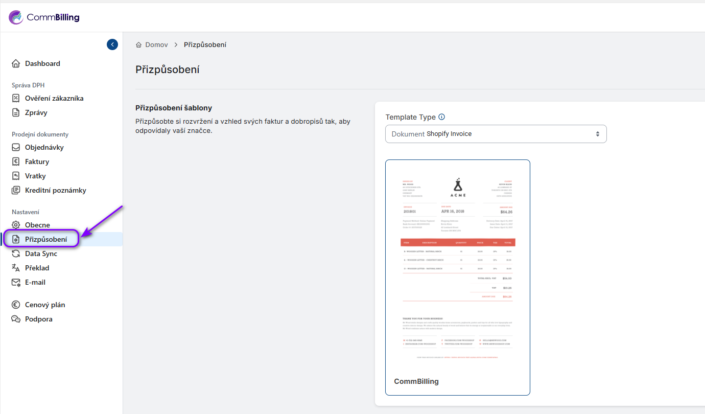 Klikněte zde pro více informací o instalaci CommBilling na Shopify.