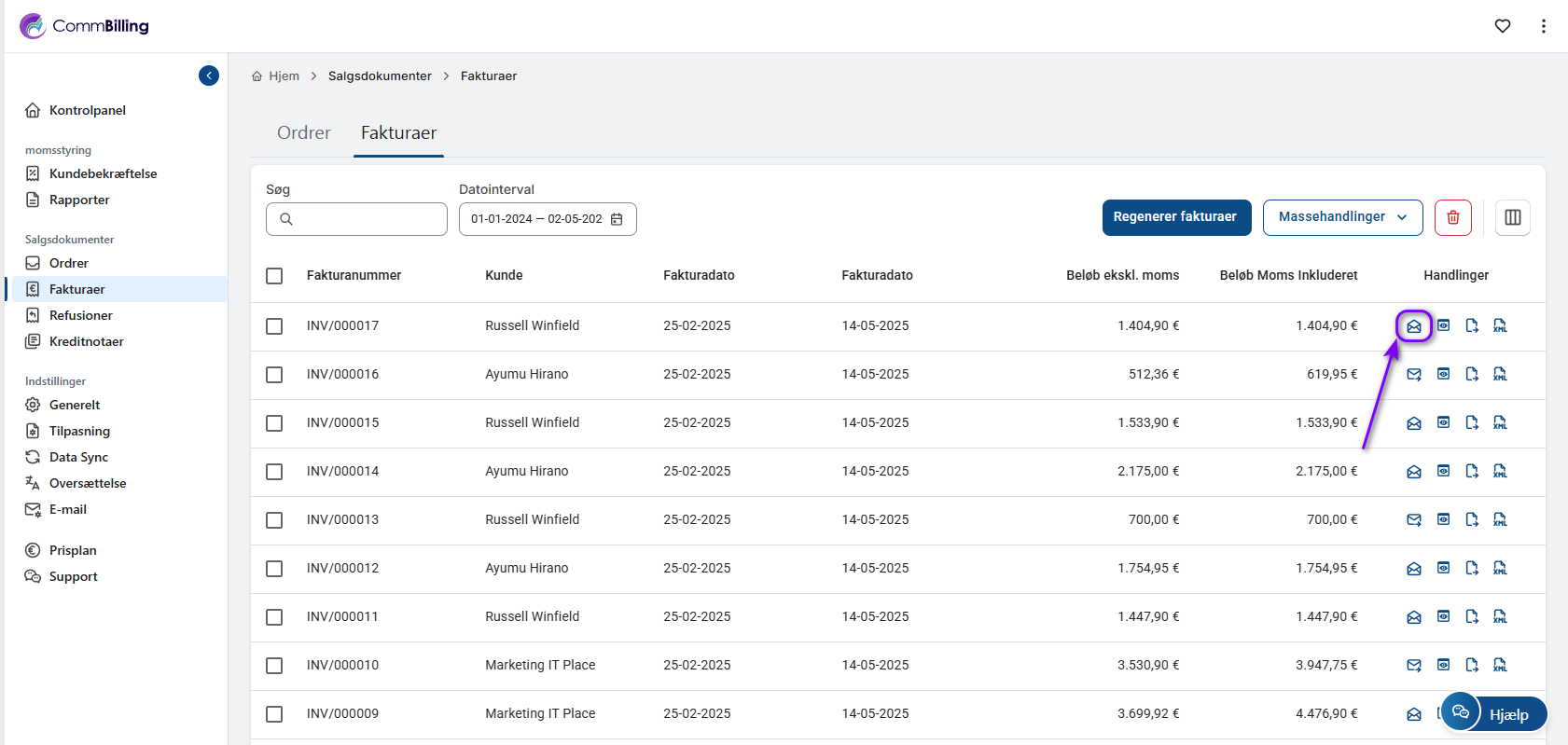 Hvis en kunde ikke har modtaget sin faktura, kan du nemt sende den igen via CommBilling.