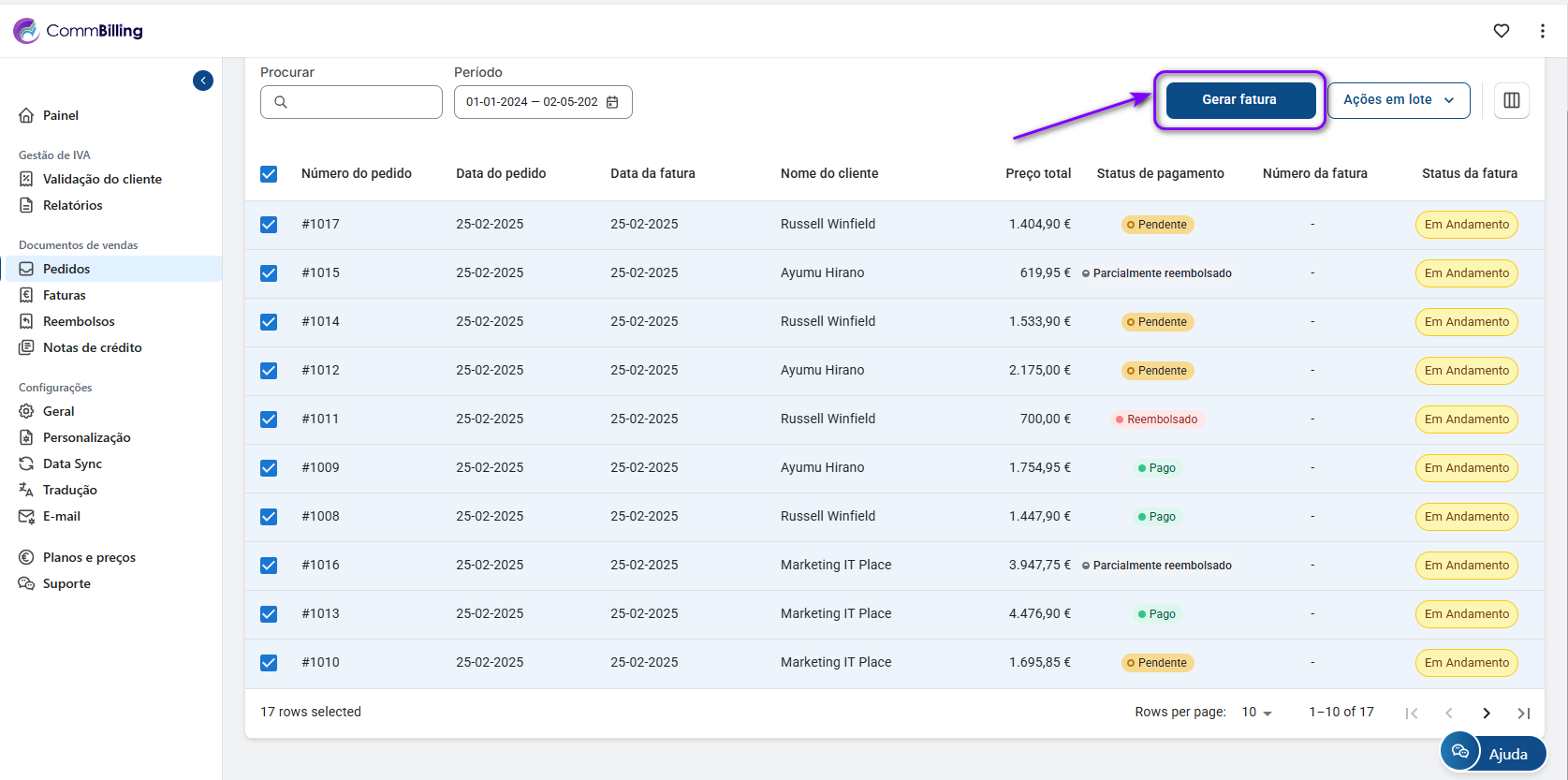 - Trin 3: Gennemse listen, og vælg de ordrer, du vil generere en faktura for
