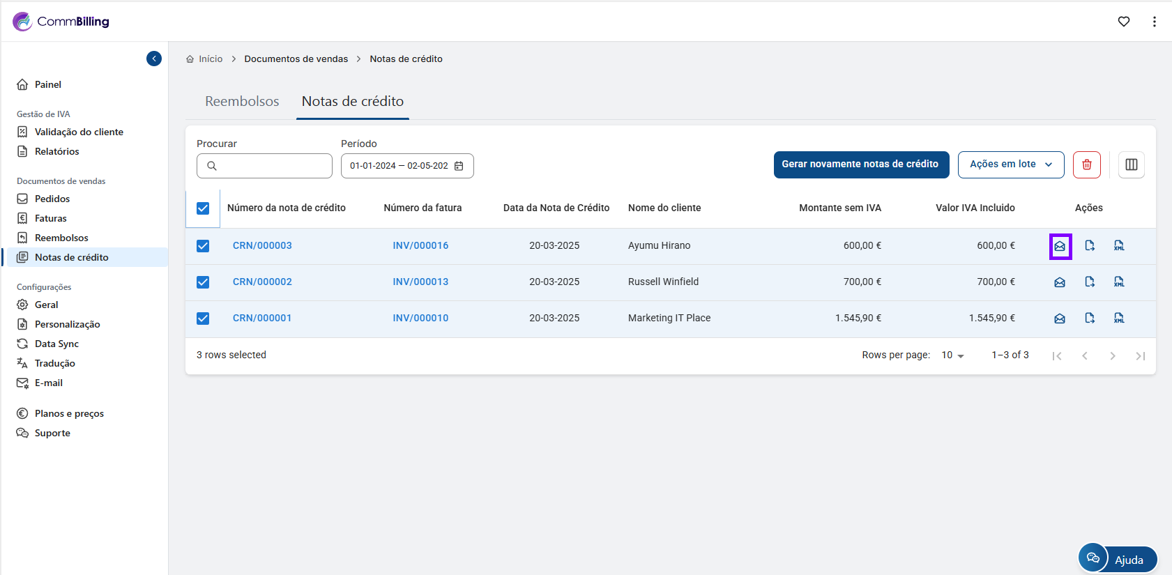 - I kolonnen Handlinger ved siden af den specifikke kreditnota skal du klikke på Send e-mail.