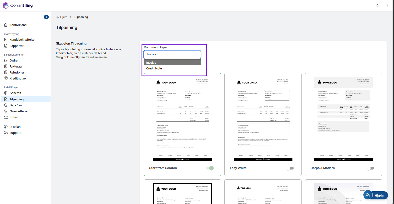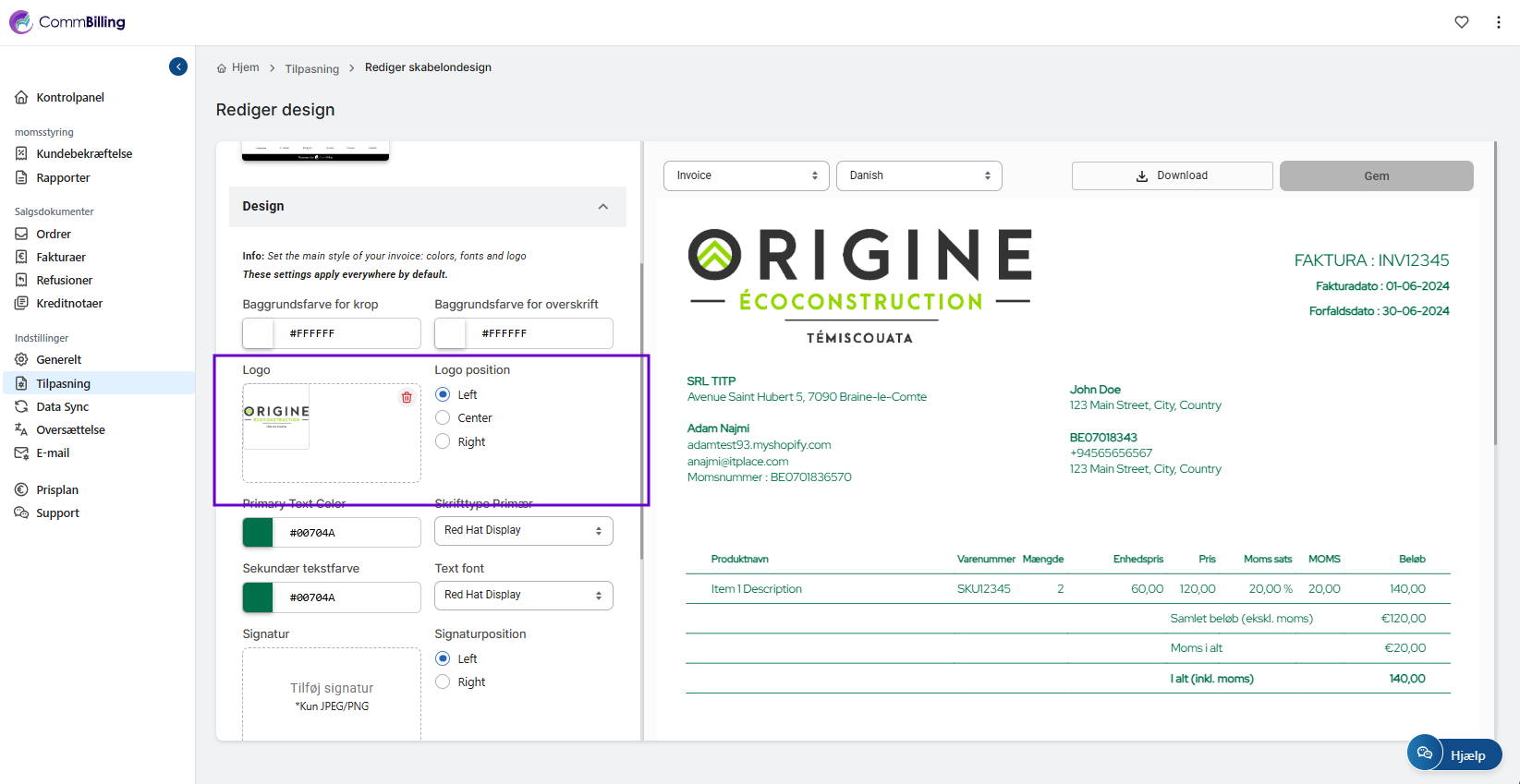 Ved at tilføje dit logo sikrer du, at hver faktura sendt fra CommBilling straks er genkendelig og i overensstemmelse med din virksomheds visuelle identitet. Denne lille, men betydningsfulde tilpasning styrker dit brands troværdighed og forbedrer din kundekommunikation.