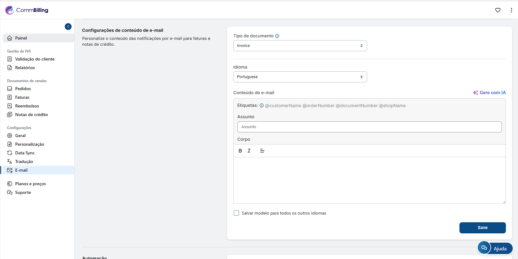 - Opsæt automatiske e-mailnotifikationer for generering af fakturaer og kreditnotaer.