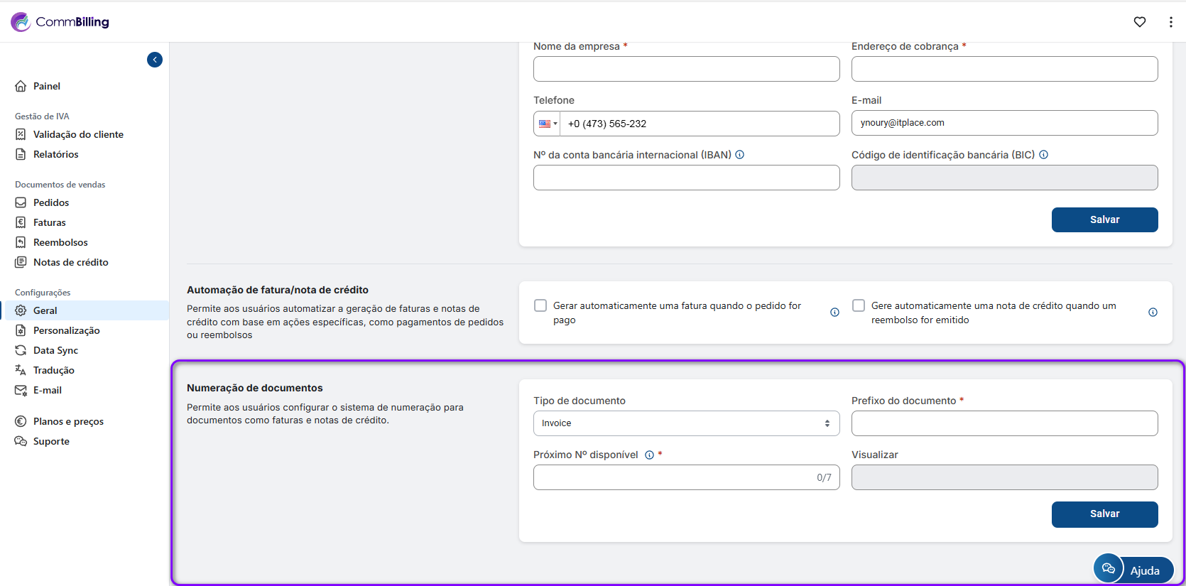 - Nummerering af salgsdokumenter: Dette afsnit giver dig mulighed for at konfigurere nummereringssystemet for dokumenter som fakturaer og kreditnotaer. At have en klar og tilpasselig nummereringssekvens sikrer konsistens og hjælper med dokumentorganisation og sporing.