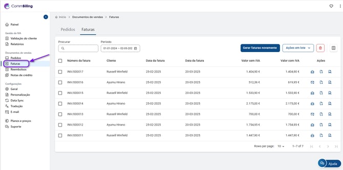 1. Naviger til fanen Salgsdokumenter i CommBilling.