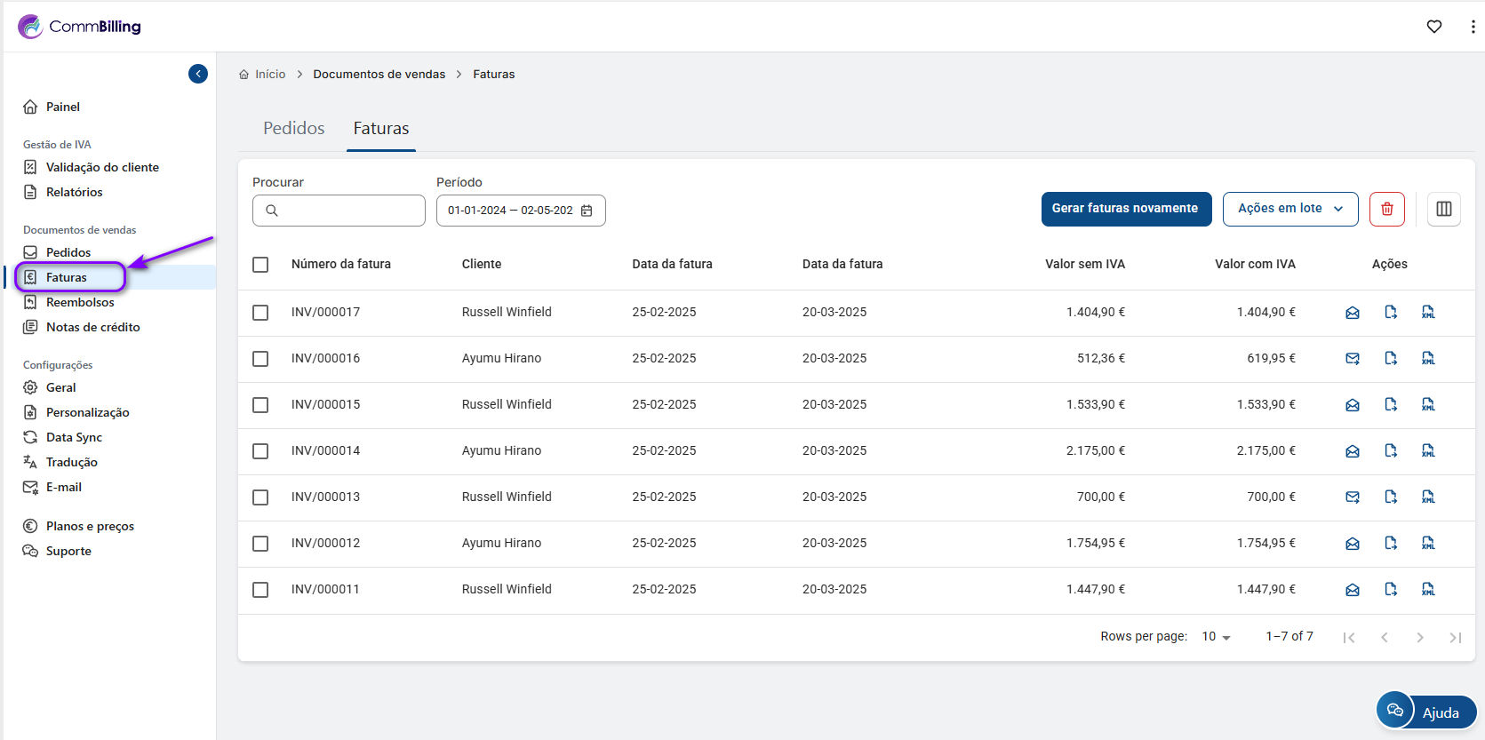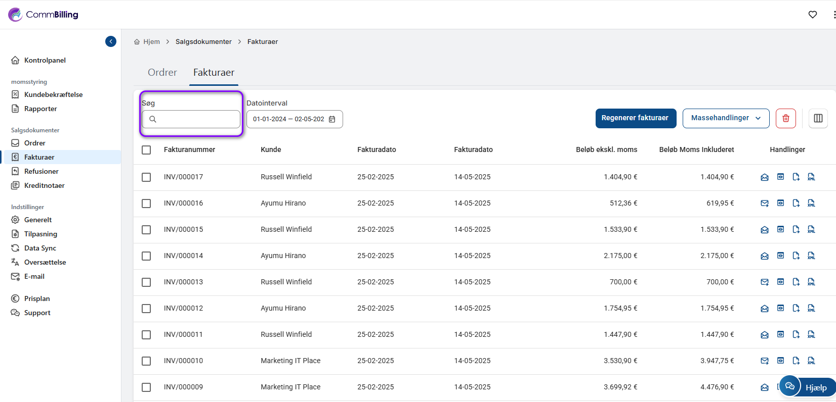 Ved at bruge søge- og datofiltrene i afsnittet Fakturaer kan du hurtigt finde og administrere tidligere fakturaer i CommBilling. Dette hjælper med at strømline din arbejdsgang og sikrer nem adgang til vigtige økonomiske registreringer.