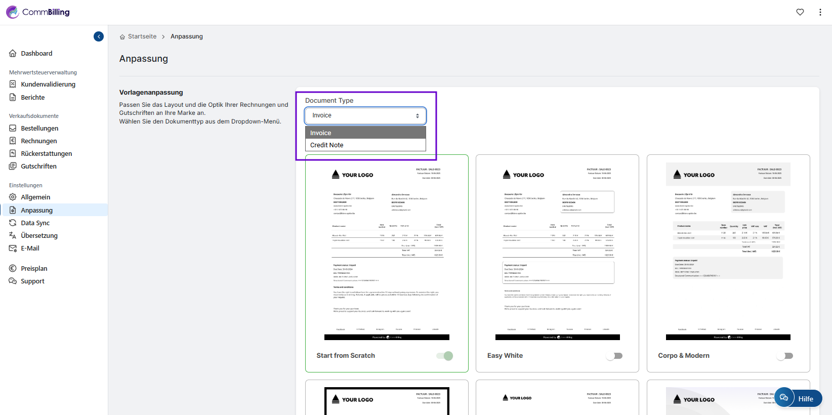 - Schritt 2: Wählen Sie „Rechnung“ im Abschnitt Dokumenttyp.