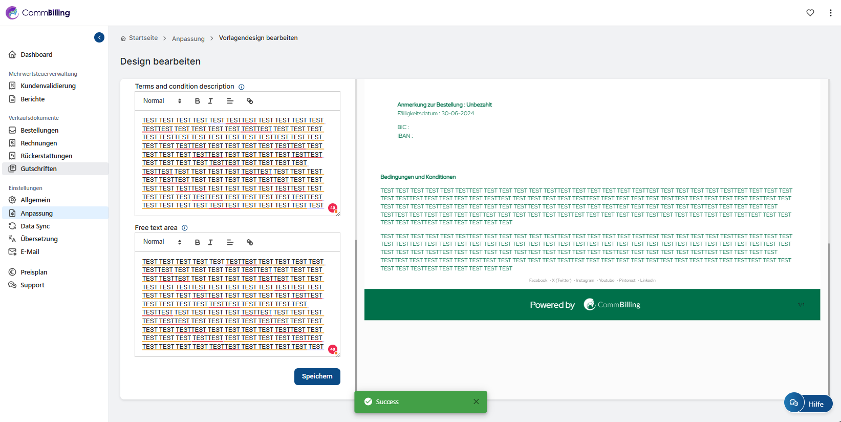 Die Anpassung Ihrer Zahlungsanweisungen stellt sicher, dass Kunden stets klare und genaue Informationen für ihre Zahlungen erhalten. Dadurch werden Zahlungsverzögerungen reduziert und die betriebliche Effizienz verbessert. Mit CommBilling behalten Sie die vollständige Kontrolle darüber, wie Zahlungsdetails dargestellt werden, und schaffen ein nahtloses und professionelles Abrechnungserlebnis.