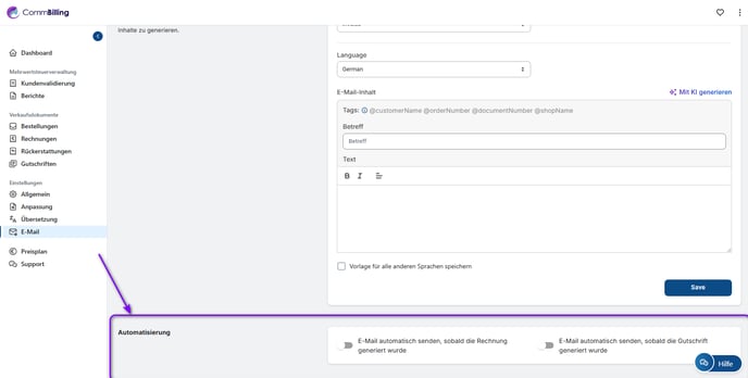 Automatisiertes Versenden von E-Mails an Kunden bei der Erstellung von Verkaufsdokumenten
