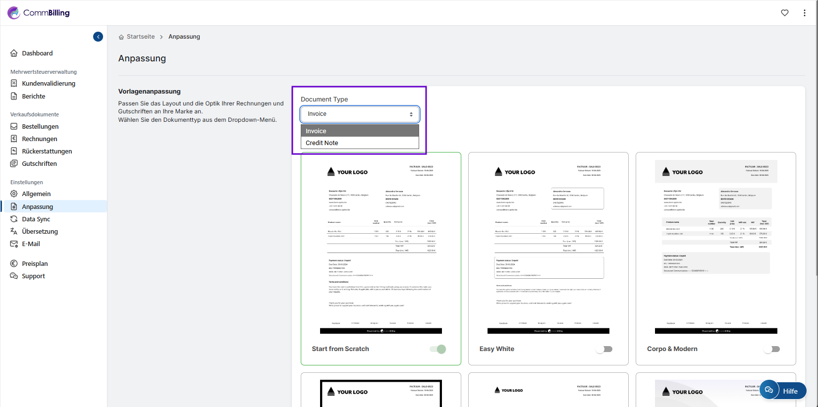 - Schritt 2: Wählen Sie im Abschnitt Dokumenttyp die Rechnungsvorlage aus.