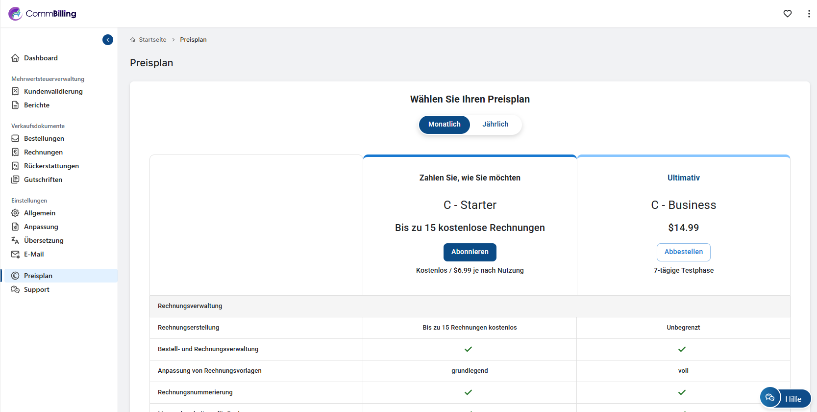 Ja, Sie können Ihr CommBilling-Abonnement jederzeit kündigen. CommBilling bietet einen einfachen Prozess zur Verwaltung und Kündigung Ihres Abonnements, sodass Sie die Kontrolle über Ihr Konto behalten.