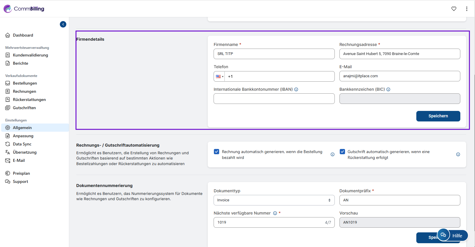Konfiguration Ihrer allgemeinen Einstellungen in CommBilling