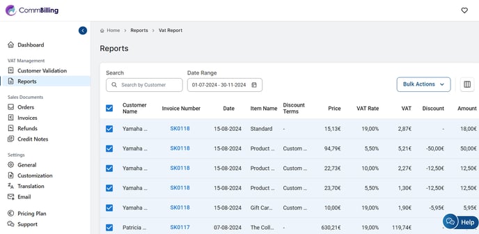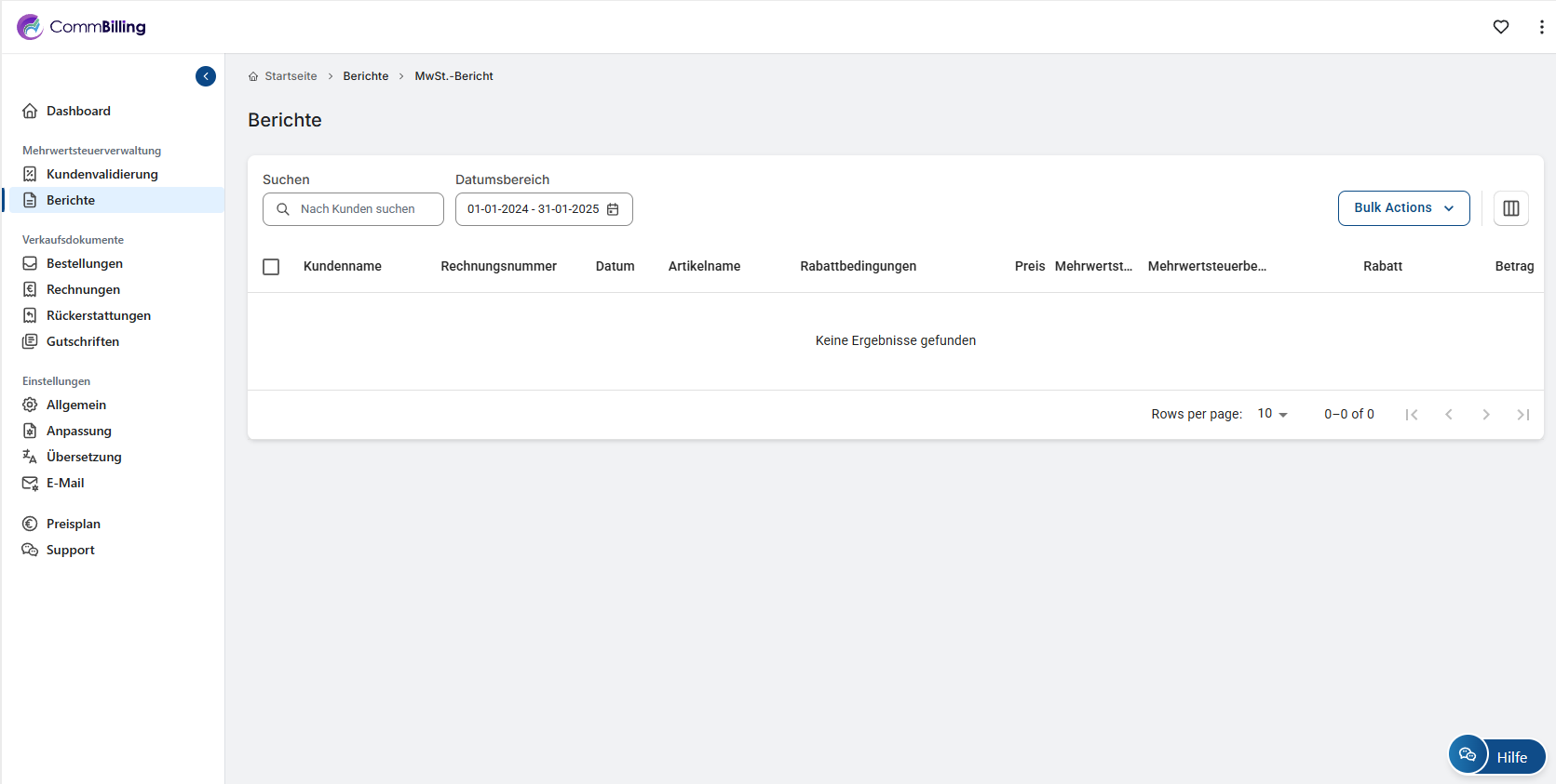 CommBilling erleichtert die Erstellung von Umsatzsteuer- und Steuerberichten, sodass Sie gesetzeskonform bleiben und Steuerdetails effizient nachverfolgen können. Diese Funktion ist ausschließlich im C-Business-Plan verfügbar.