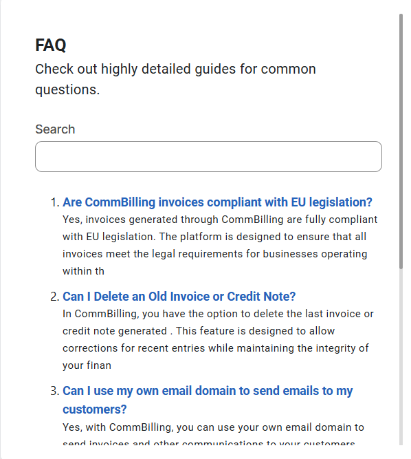For new users, the Let’s Get Started section outlines three simple steps to begin using CommBilling: