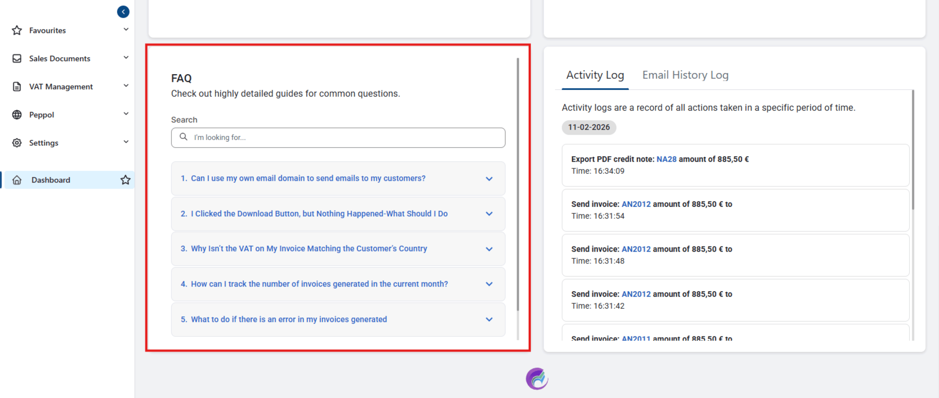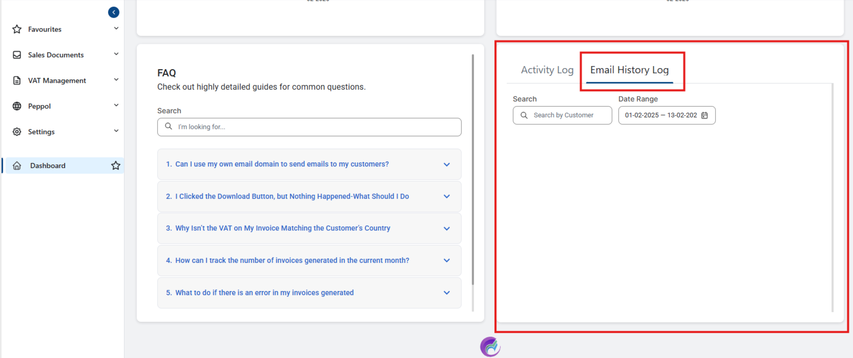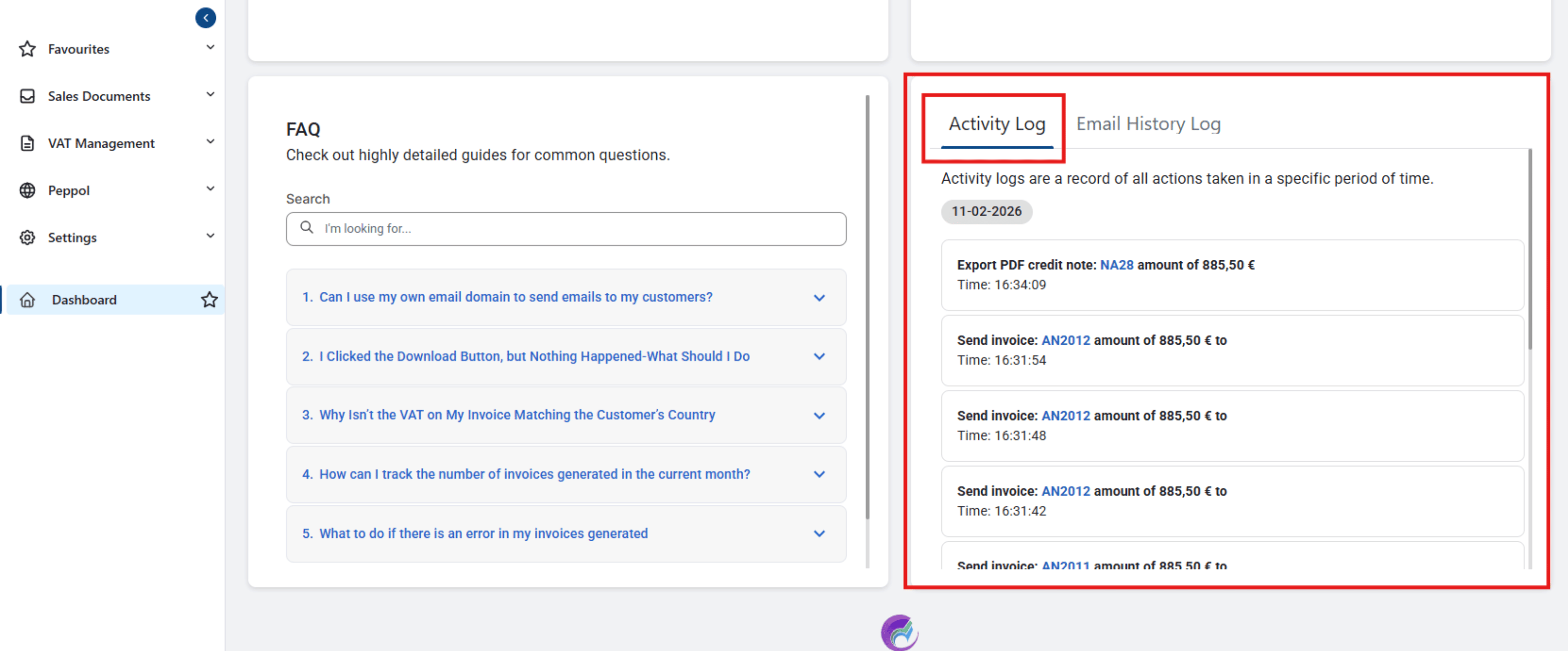 The Email History Log allows you to monitor all outgoing emails related to billing, including invoices, credit notes, and payment reminders. You can track the status of each email (e.g., sent, delivered, failed) and ensure that your customers receive their billing documents on time. This section gives you peace of mind by providing a complete communication record between you and your clients.