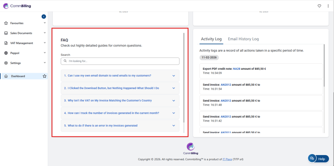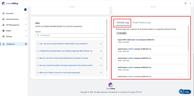 The Email History Log allows you to monitor all outgoing emails related to billing, including invoices, credit notes, and payment reminders. You can track the status of each email (e.g., sent, delivered, failed) and ensure that your customers receive their billing documents on time. This section gives you peace of mind by providing a complete communication record between you and your clients.