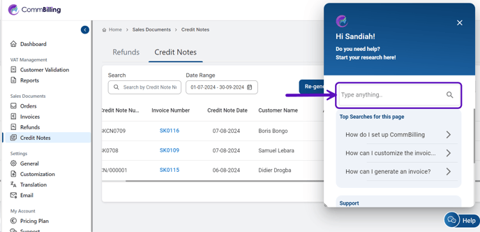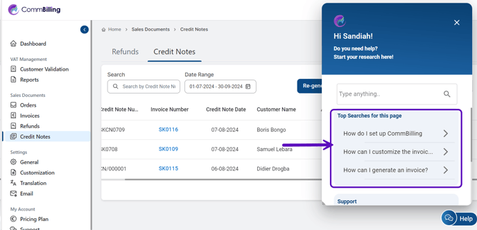 At the top of the help section, you will find a Search Bar. Here, you can type in keywords or phrases to quickly find articles that provide guidance on specific topics. Whether you need help with setting up VAT, generating invoices, or customizing templates, the search functionality makes it easy to locate the information you need without having to browse through multiple resources.