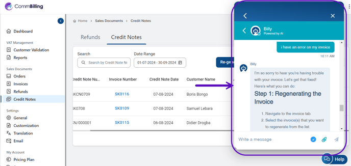 Chat with Us: CommBilling offers an AI-powered chat option to help answer your questions in real time. The AI is designed to handle most inquiries, but if you need additional assistance, there is also the possibility to talk to a human. However, this feature is only accessible to C-Business Plan users, giving them priority access to human support when needed.