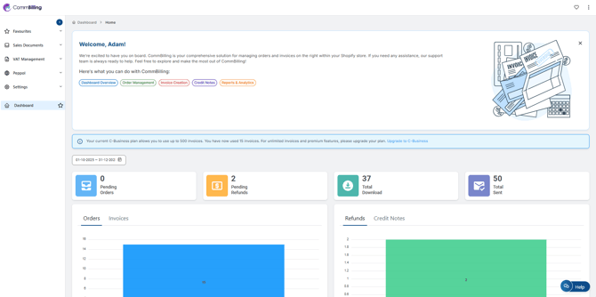 Setting up CommBilling properly ensures accurate VAT handling, smooth order syncing, compliant invoicing, and a fully automated billing workflow. This initial configuration is essential to guarantee that your sales documents, automation rules, and design preferences work seamlessly with your Shopify store.