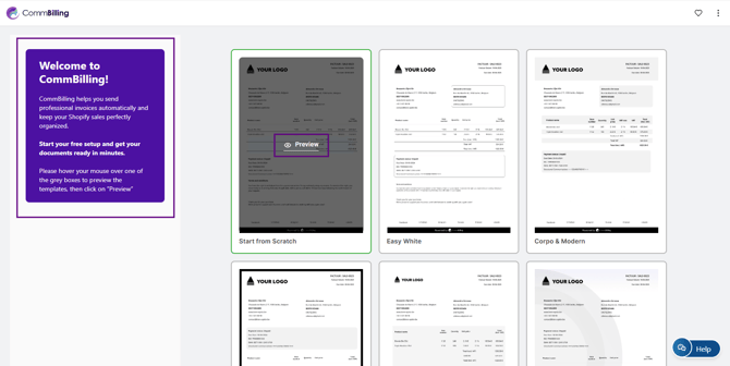 After installing CommBilling from the Shopify App Store, you will be guided through a quick setup workflow. This onboarding helps you configure the essential elements required to start using the app immediately.