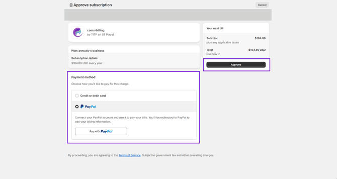 - Choose your preferred payment method, then click on the button "Approve"