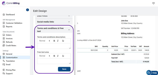 In CommBilling, you can easily add and edit these notes to make your invoices more informative, compliant, and aligned with your company’s communication style.
