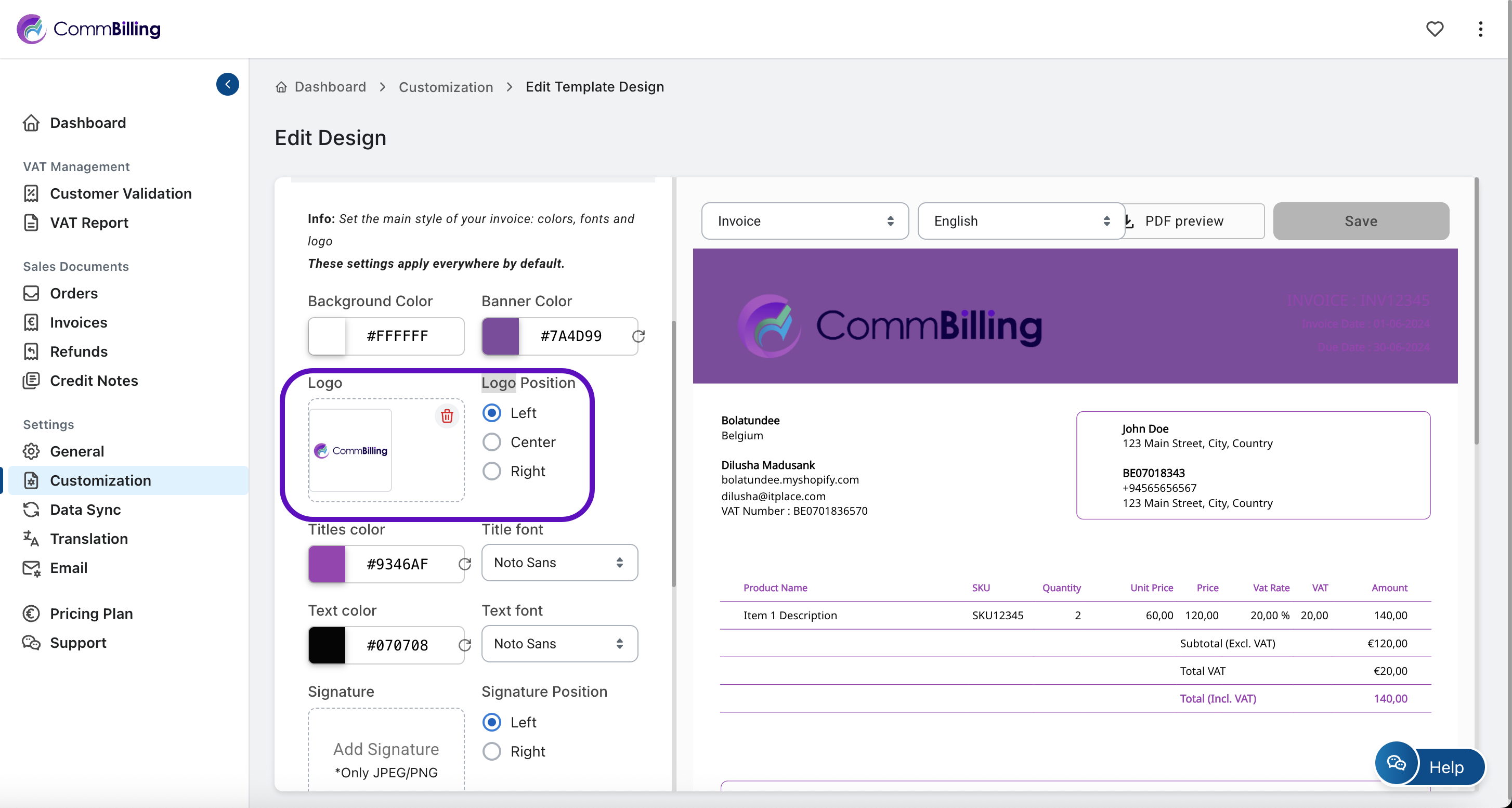 Choose also your preferred Logo Position : Left, Center, or Right to align it properly on your document.