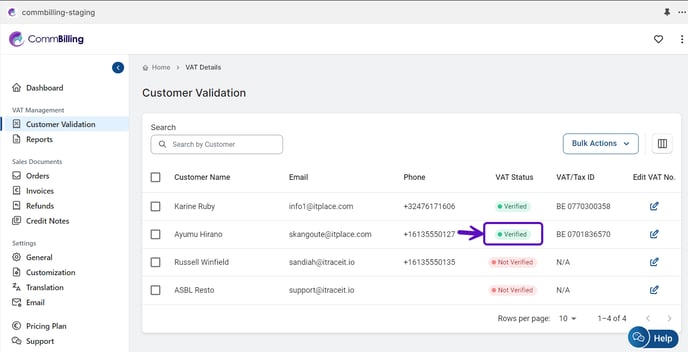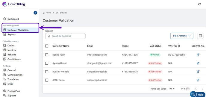 Click on the Customer Validation tab. Here, you'll see a list of all your customers.