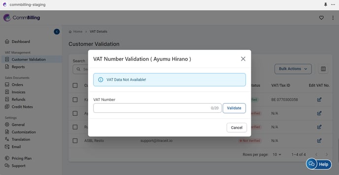 Validating European VAT numbers for your customers is essential to ensure compliance with tax regulations. Follow these steps to add and validate a customer's VAT number using CommBilling’s VAT Management feature: