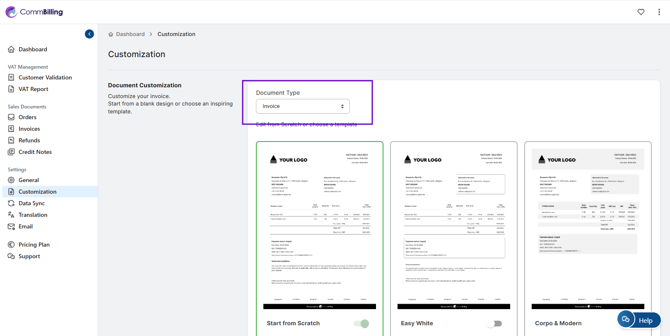 - Step 2: Select "Invoice" in Document Type