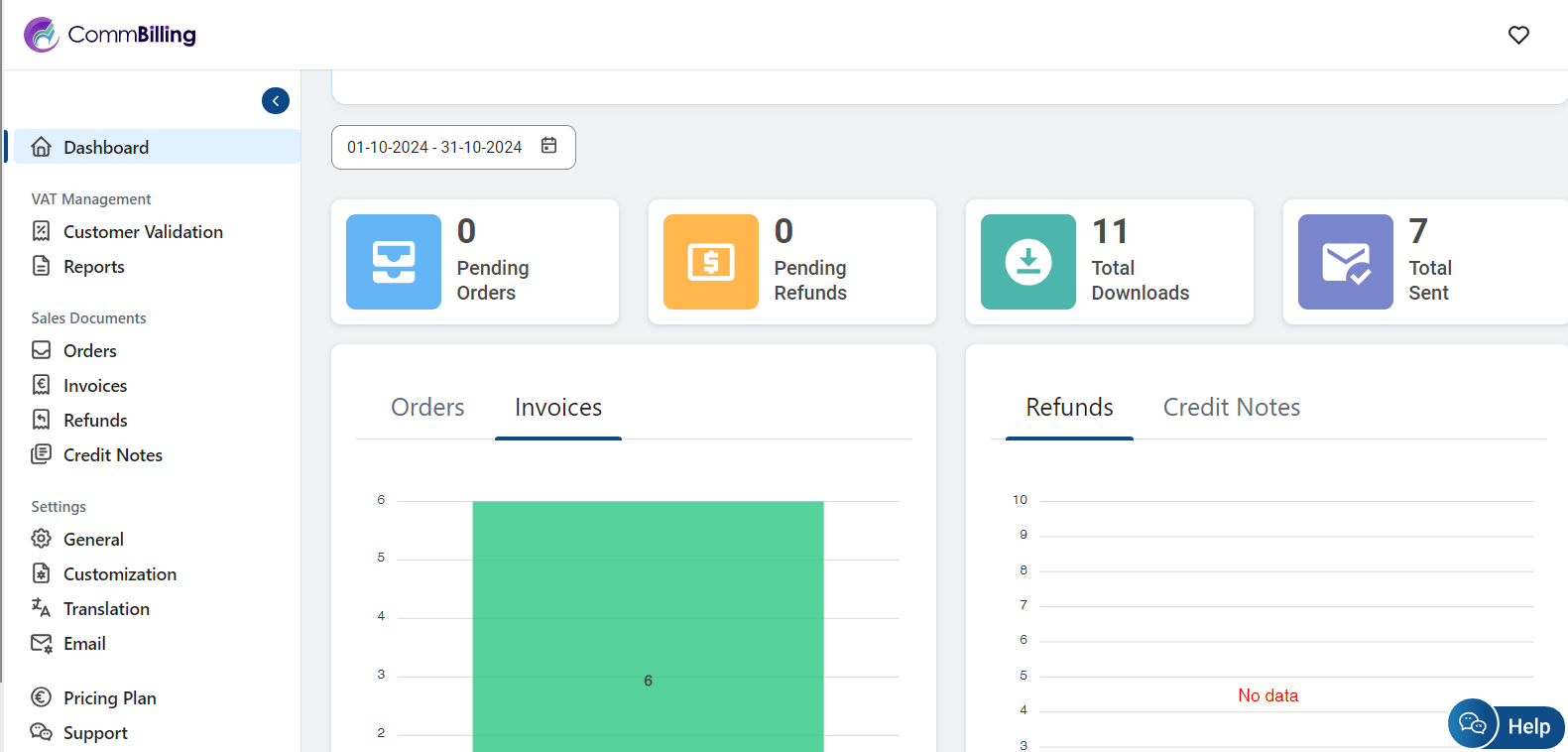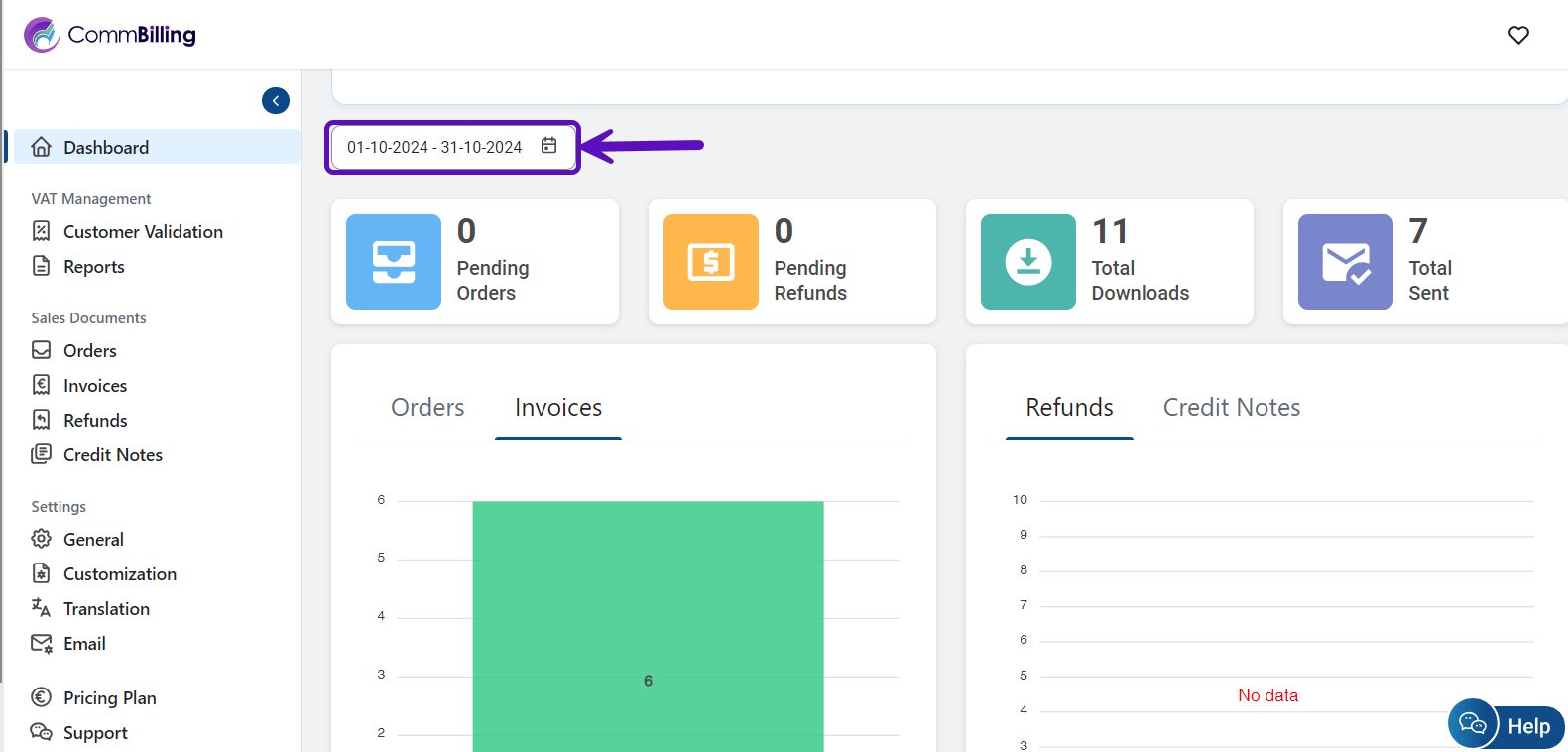 - To get specific insights, select a date range filter. This will update the invoice statistics to show only those generated within the chosen timeframe.