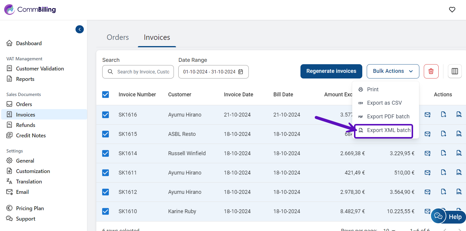 Exporting invoices as XML is a powerful feature for businesses that need to integrate invoice data into other systems or meet specific regulatory requirements. This feature is available exclusively for users on the C-Business Plan. XML files offer a structured format that is easily imported into accounting or financial software. Here’s how to export your invoices in XML batch format: