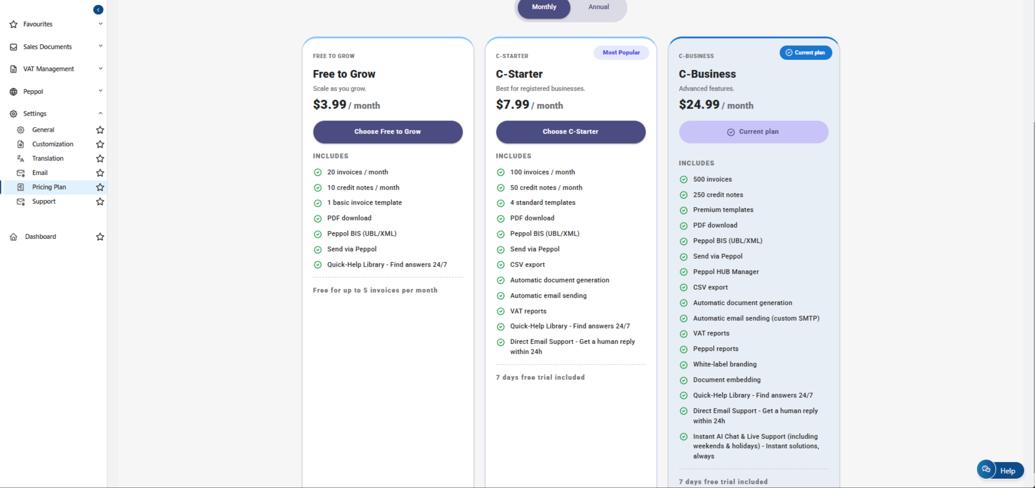 Built to support active Shopify stores, the C-Starter plan includes structured invoicing, Peppol compliance, automation features, and reporting tools that allow you to focus on growing your business while keeping your billing under control.