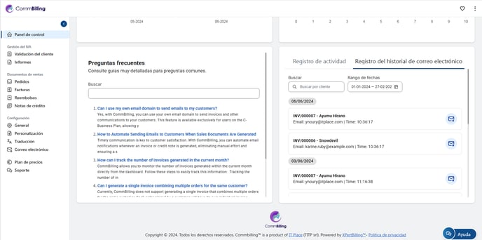 6. Si desea volver a enviar o confirmar la entrega, compruebe el Registro del historial de correo electrónico en el Panel de control para verificar que la factura se envió correctamente.