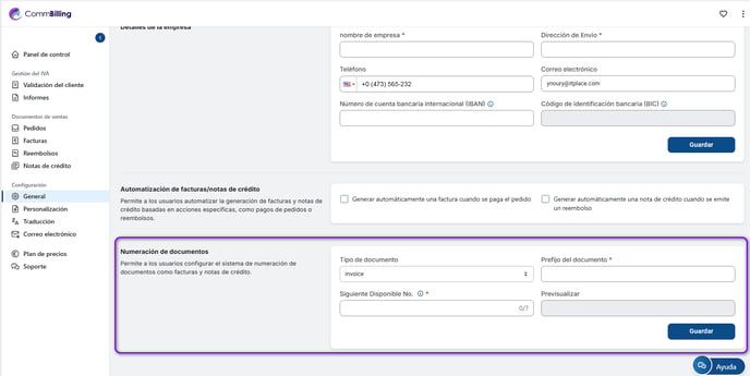 Cómo configurar la numeración de facturas en CommBilling