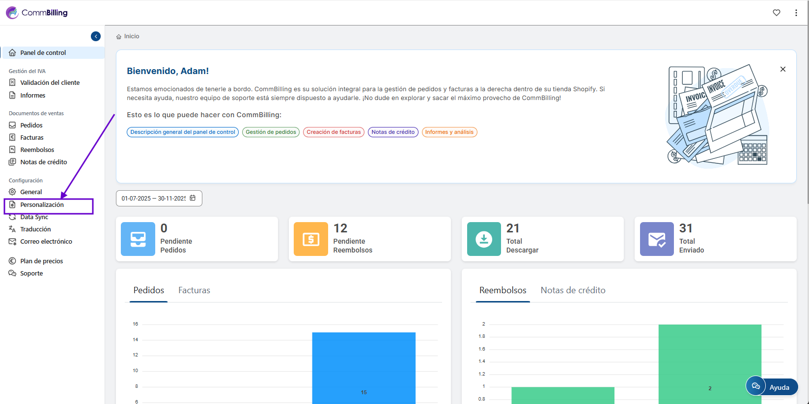Personalizar las fuentes de tus facturas mejora la coherencia visual de tu marca y refuerza el aspecto profesional de tus documentos financieros. Con CommBilling puedes ajustar fácilmente la tipografía para que se adapte al estilo de tu empresa, asegurando que cada factura que envíes deje una impresión fuerte y coherente.
