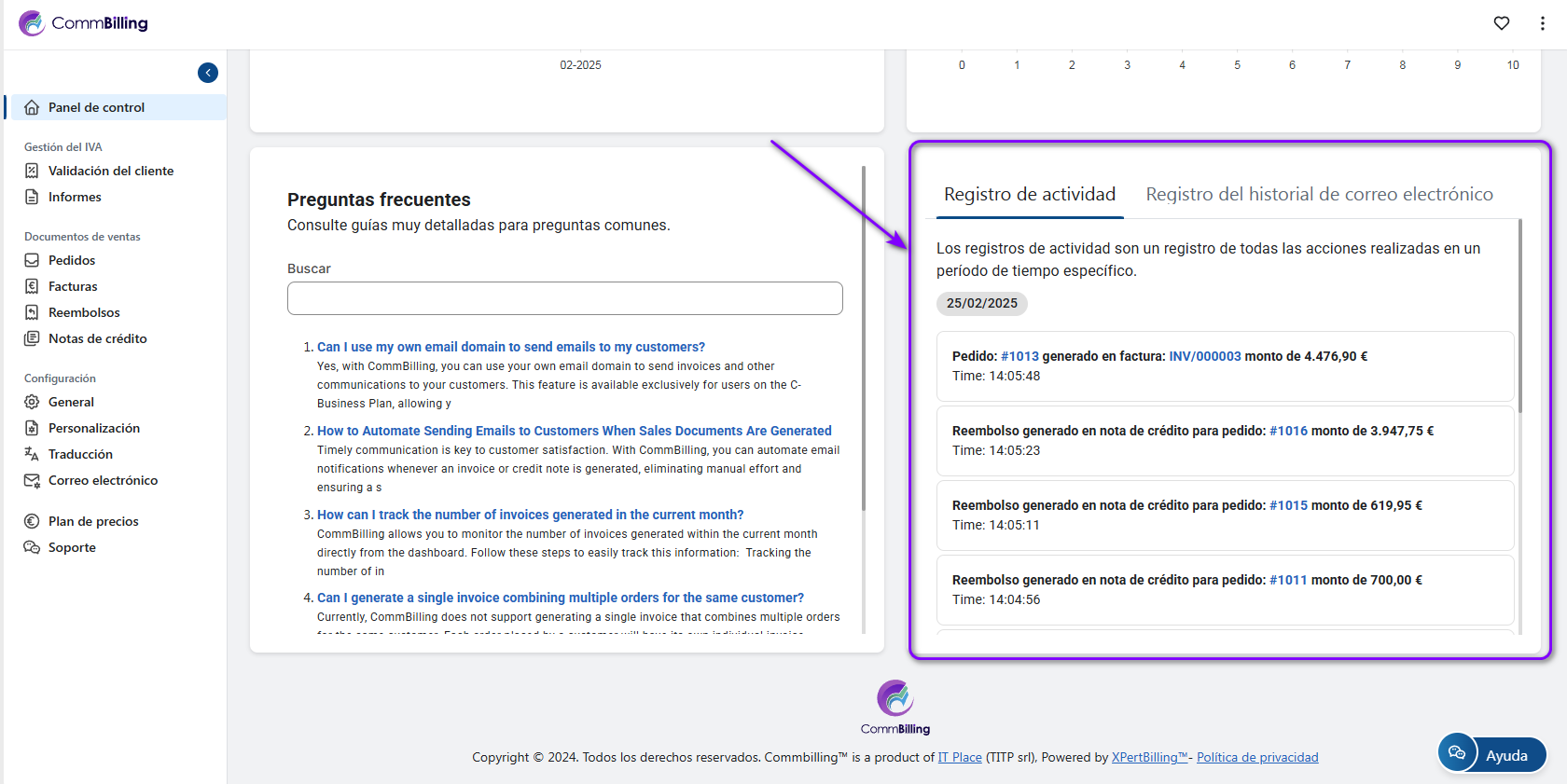 El seguimiento de la actividad del sistema ayuda a garantizar la transparencia, mejorar la resolución de problemas y mantener la eficiencia operativa. El registro de actividades de CommBilling registra todas las acciones clave, lo que le permite supervisar los cambios, realizar un seguimiento de las actualizaciones de documentos y revisar las actividades de los usuarios.