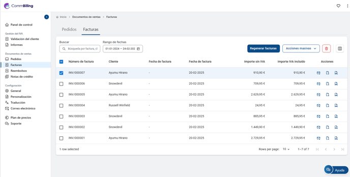2. Seleccione de la lista la(s) factura(s) que desea regenerar