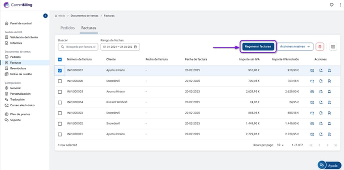 3. Pulse el botón «Regenerar factura».