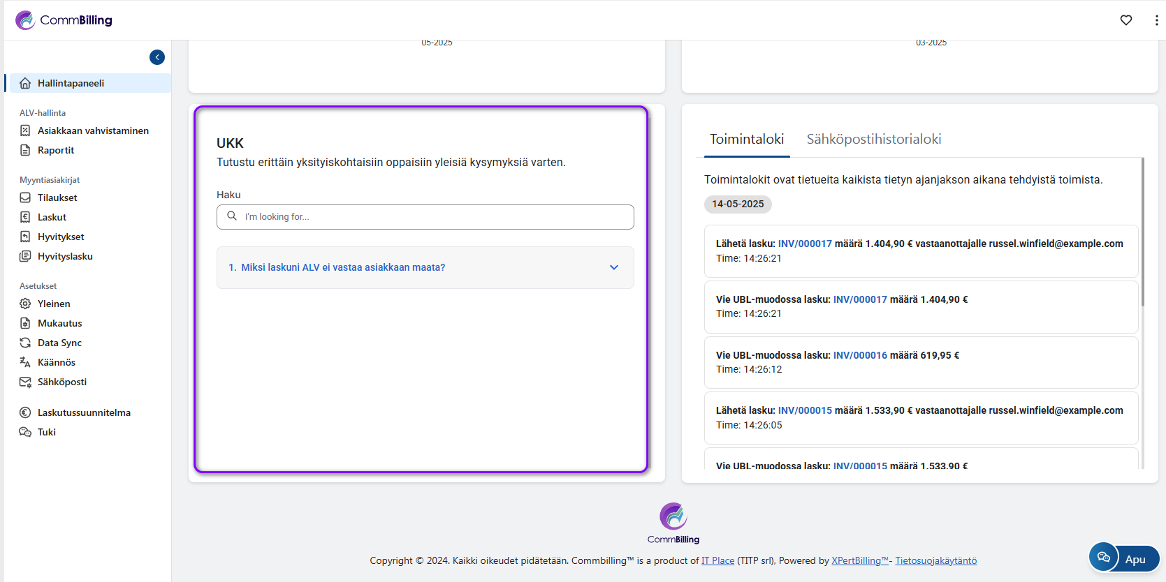 "UKK-osio" vastaa yleisiin kysymyksiin CommBillingistä yleensä.