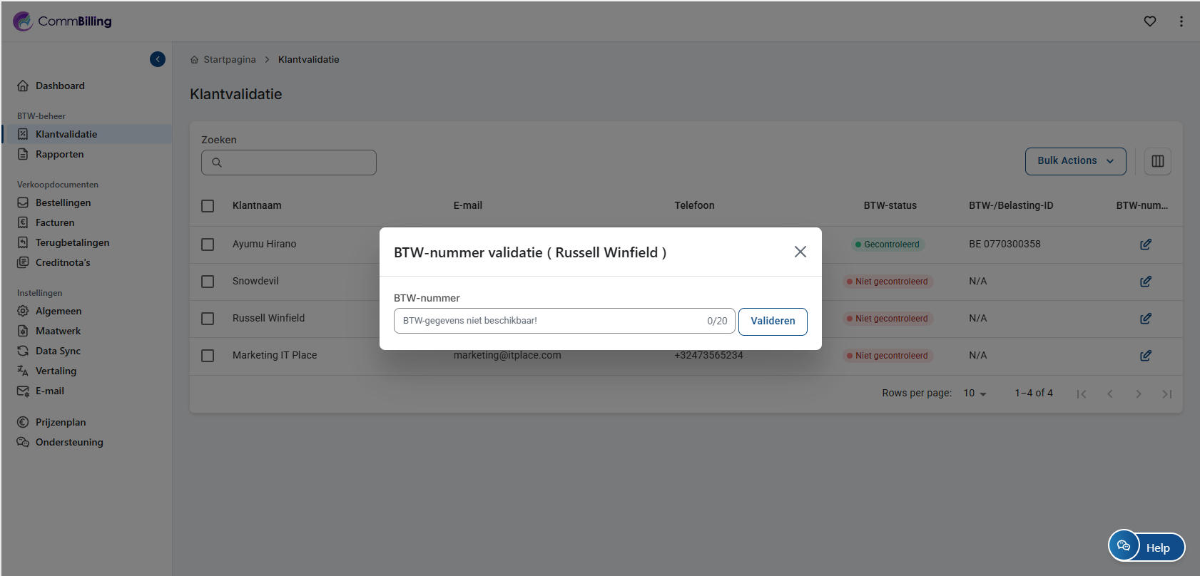 2. Napsauta "Validoi"-painiketta. CommBilling tarkistaa ja validoi automaattisesti ALV-numeron Euroopan ALV-järjestelmässä.