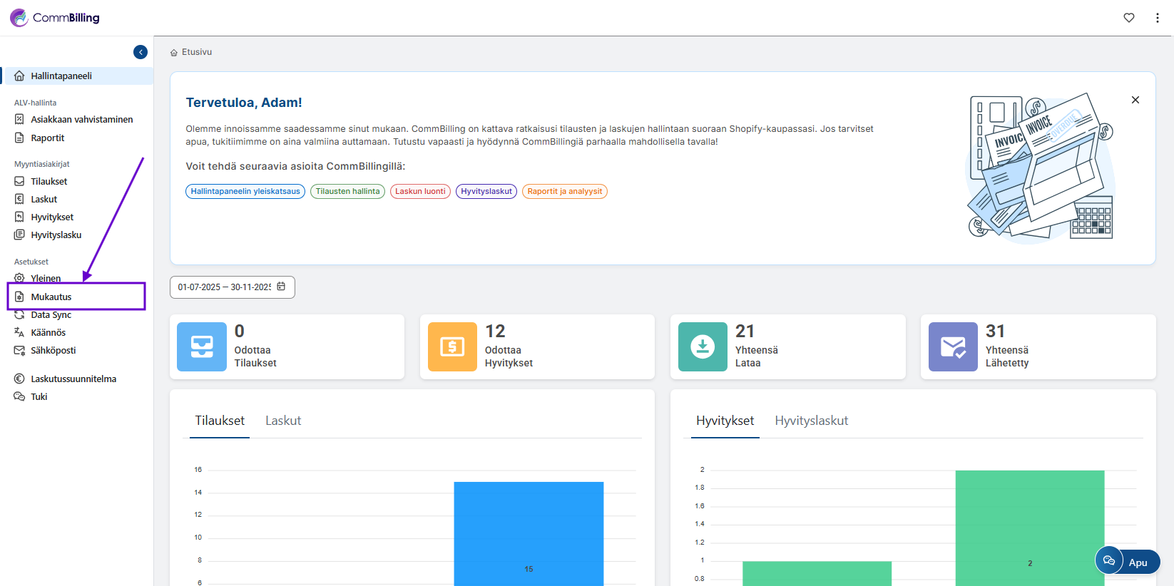 CommBillingin ennalta määritettyjen ammattilaistasoisten laskupohjien ansiosta aloitat jo valmiiksi yrityskäyttöön sopivalla ulkoasulla. Taustan, bannerin ja otsikoiden värien muokkaamisen tuoma joustavuus varmistaa, että laskusi heijastavat täysin brändisi visuaalista identiteettiä säilyttäen samalla selkeyden ja tyylikkyyden.
