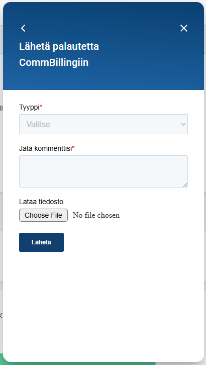 - Lähetä palautetta: Tämä vaihtoehto tarjoaa lomakkeen, jossa voit jakaa ajatuksiasi, ehdotuksiasi tai ilmoittaa CommBillingin kanssa kohtaamistasi ongelmista. Se on suora tapa kommunikoida CommBilling-tiimin kanssa ja auttaa parantamaan sovellusta.
