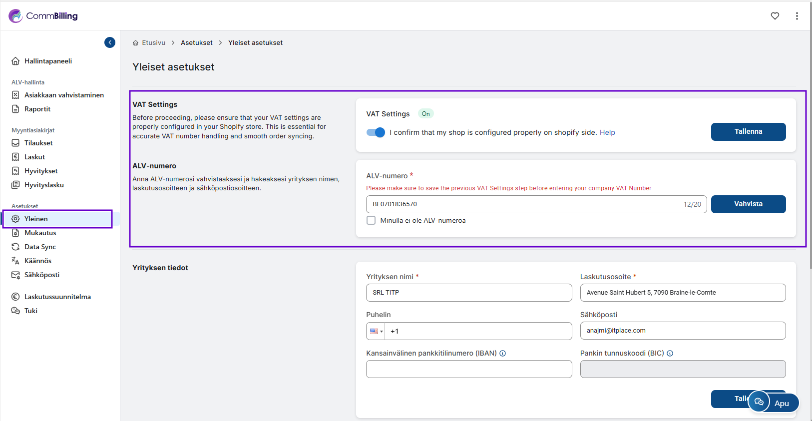 Tee tämä ensin: Aseta Shopify EU ALV -asetukset ennen CommBillingin käyttöä